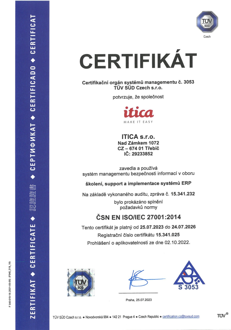 V době rostoucích kybernetických hrozeb je pro nás ochrana informací absolutní prioritou. Certifikace ISO 27001potvrzuje, že v ITICA máme zaveden komplexní systém pro řízení bezpečnosti dat – od fyzického zabezpečení až po šifrování a procesy prevence úniků.