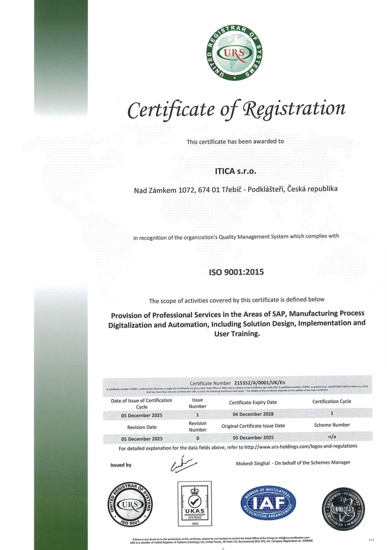 Naši konzultanti pravidelně absolvují certifikace a školení od společnosti SAP. Se specializací na výrobní a údržbářské moduly.