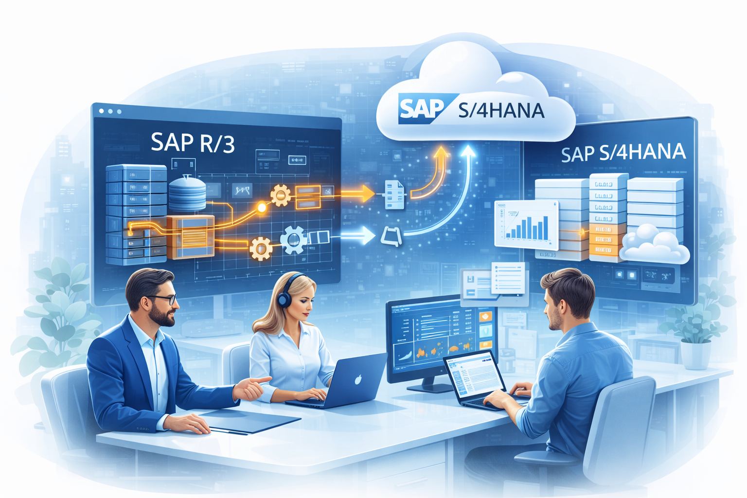 Přechod z R/3 na S/4HANA není jen technická migrace – je to strategická transformace. Reimplementace (tzv. „Greenfield“ přístup).