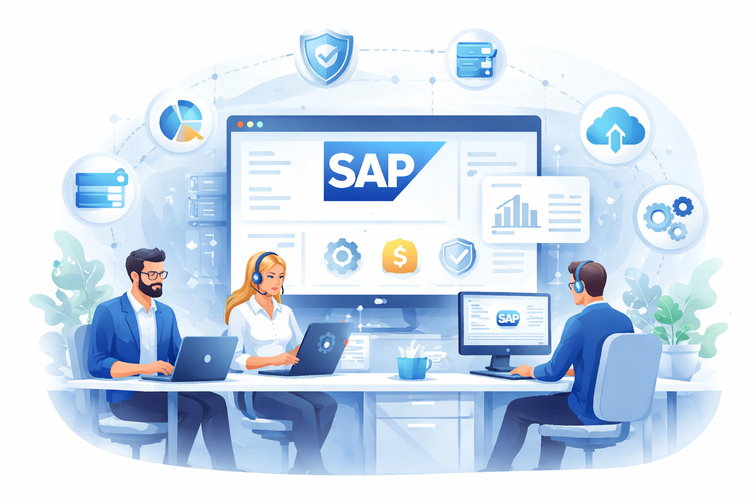 Aplikační podpora SAP: Pomáháme s konfigurací, úpravami procesů a optimalizací systému.